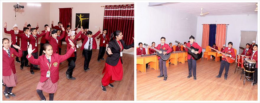 To perform musical and dance activities and to create interest for dance and music among students , a well-equipped music and dance lab with school drum, school band and other latest musical instruments, high quality sound system is there.
