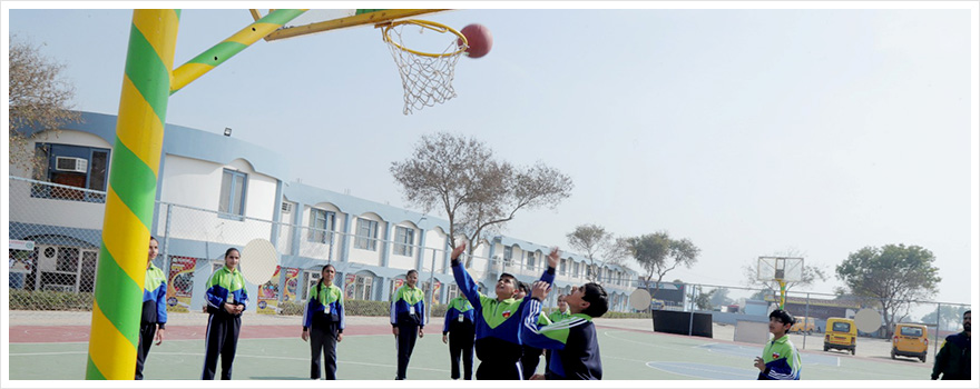 - Throwball - Throw ball court is demarcated for full-fledged practice of the Throwball buffs. Students are taught the technicalities of the game by a professional coach. Students enjoy the throwball inter-house matches as a part of their activity calendar