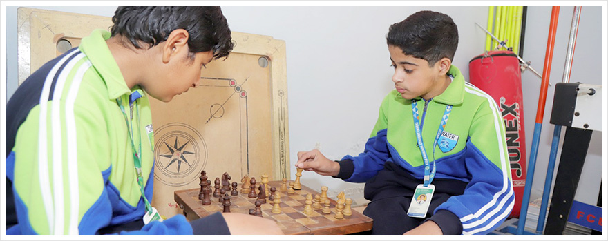 - Chess- For those who enjoy this game of conquest, conflict and competitive skill, the school has appointed a professional coach, who guides the budding Grand Masters in picking up the intricacies of the game. The school has adequate number of checker boards in SPORTS LAB to satisfy the playing instinct of the children.