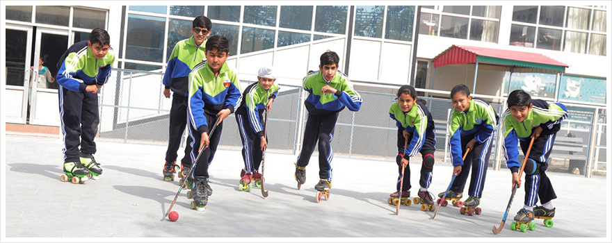 - Skating - Skating is amongst the most popular outdoor activity that most students opt for, specially the juniors. Skating is encouraged as it works on almost every major muscle group in the body. Not only that, children today need all the help they can get to stay in shape and live a healthy lifestyle. The skating rink is vast and spacious catering to big groups of students learning the finer nuances of this sport. Skating lessons are delivered by a well-experienced coach. Our students have always brought laurels to the school at the State level and National Level Games. Special training session in the evening is run in school campus under the banner of “Wheels on Fire Club”