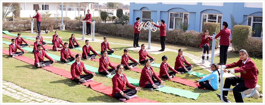 - Yoga and Aerobics - Yoga is an integral part of our school curriculum. The school offers a magnificent, spacious activity room for practicing the “asanas” learnt, although the play-scape of the school is lush and serene for outdoor sessions too. Aerobics sessions are also scheduled alternatively in the open Gym to bring about flexibility and agility amongst students. Special trainer is available for same.